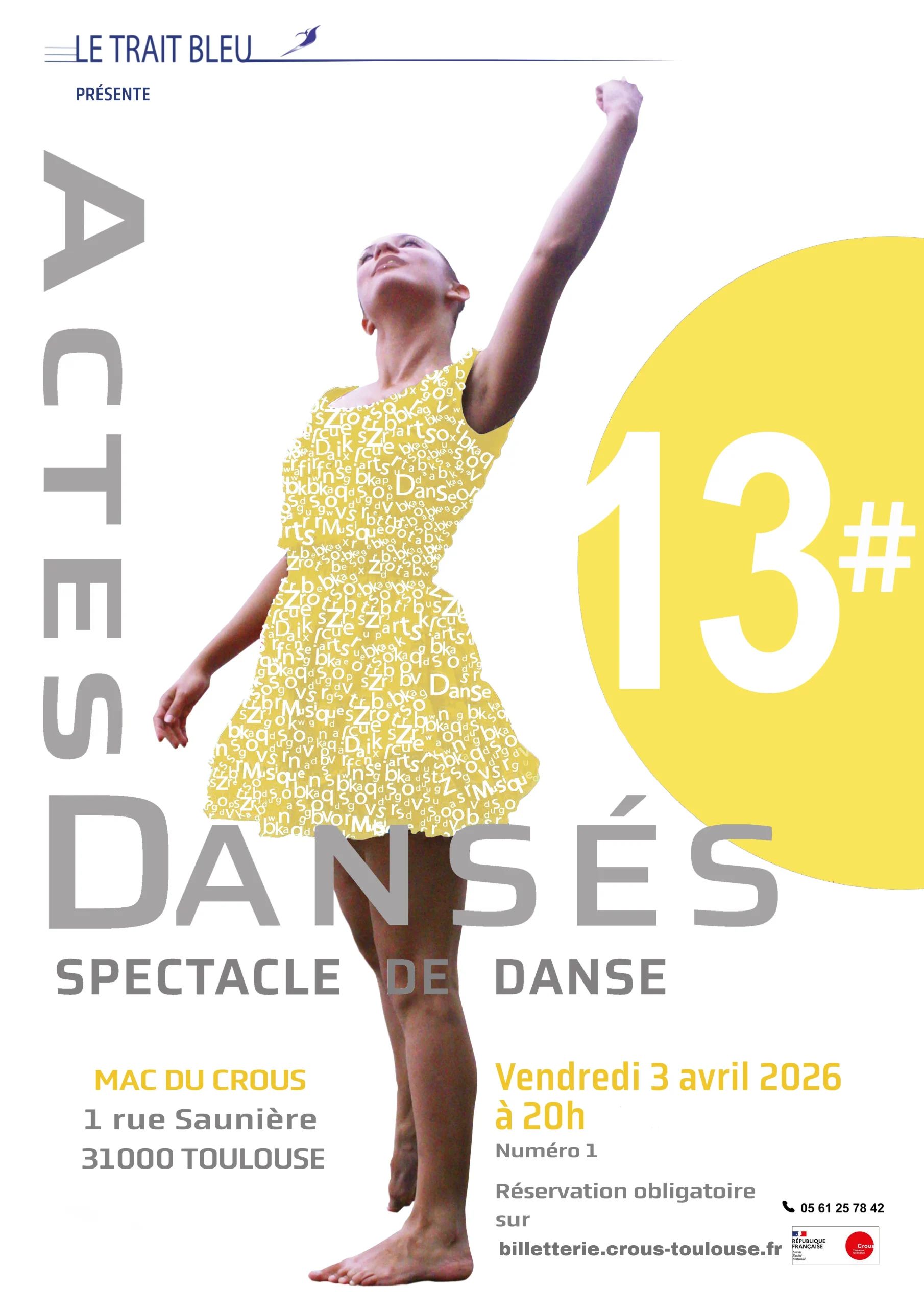 L’événement Actes Dansés, porté par l’association Le Trait Bleu à Toulouse, est un temps fort d’expression artistique ouvert aux élèves de l’école. Conçu comme un espace d’expérimentation chorégraphique, ce moment propose à chacun de s’essayer à la création, en solo ou en groupe, avec l’accompagnement des professeurs.
